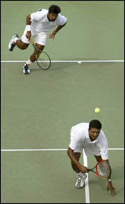While Paes struggled with his serve a bit, Bhupathi was fluent and the dominant partner.