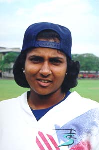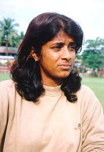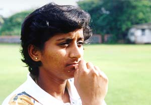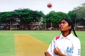 The mood of optimism noticeably pervades the rest of the side, now stretching their limbs and going through the warm-up exercises on a soggy ground. "Since we are playing on home turf, the conditions suit us," felt left-arm spinner Sangita Dabir. The Western Railway staffer moved to Bombay from Nagpur, and has been playing with the national side since 1993. The mangalsutra peeking out of her sweatshirt proclaims her married state, and Dabir is quick to give credit to her husband for supporting her and encouraging her to play.