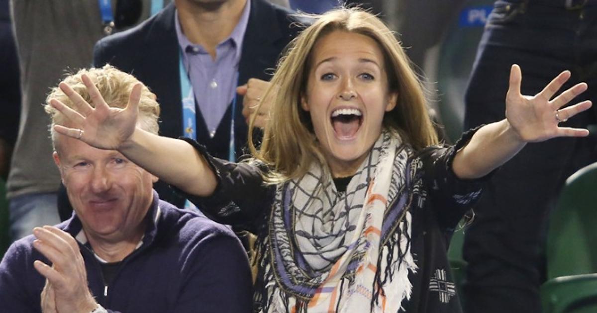 Kim Sears, fiance of Andy Murray celebrates. Photograph: Patrick Scala/Getty Images