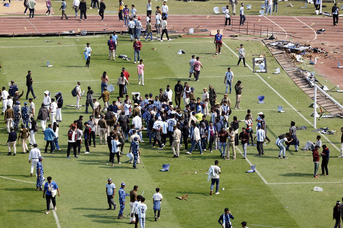 Two canopies erected for Messi and the chief minister's enclosure were torn apart, with attempts even made to set parts of them on fire before police intervened.