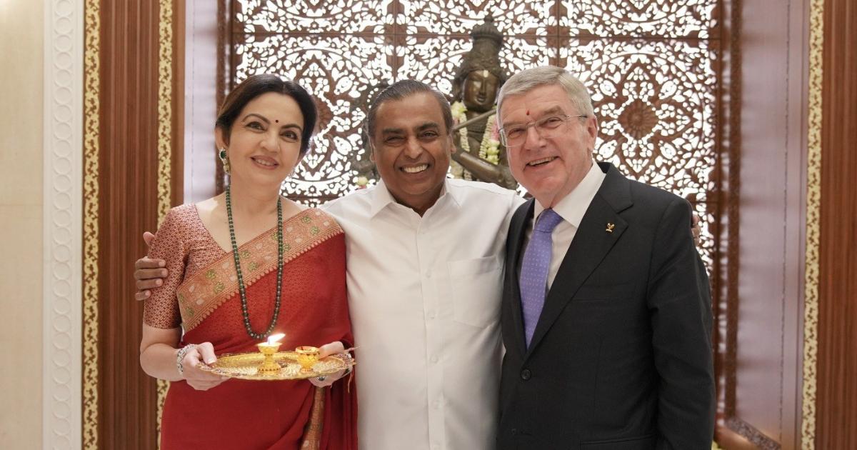 Reliance Industries Chairman Mukesh Ambani and Nita Ambani, founder and chairperson of the Reliance Foundation, hosted International Olympic Committee President Thomas Bach at their south Mumbai residence Antilia ahead of the 141st IOC session to be held between October 15 and 17 in Mumbai.