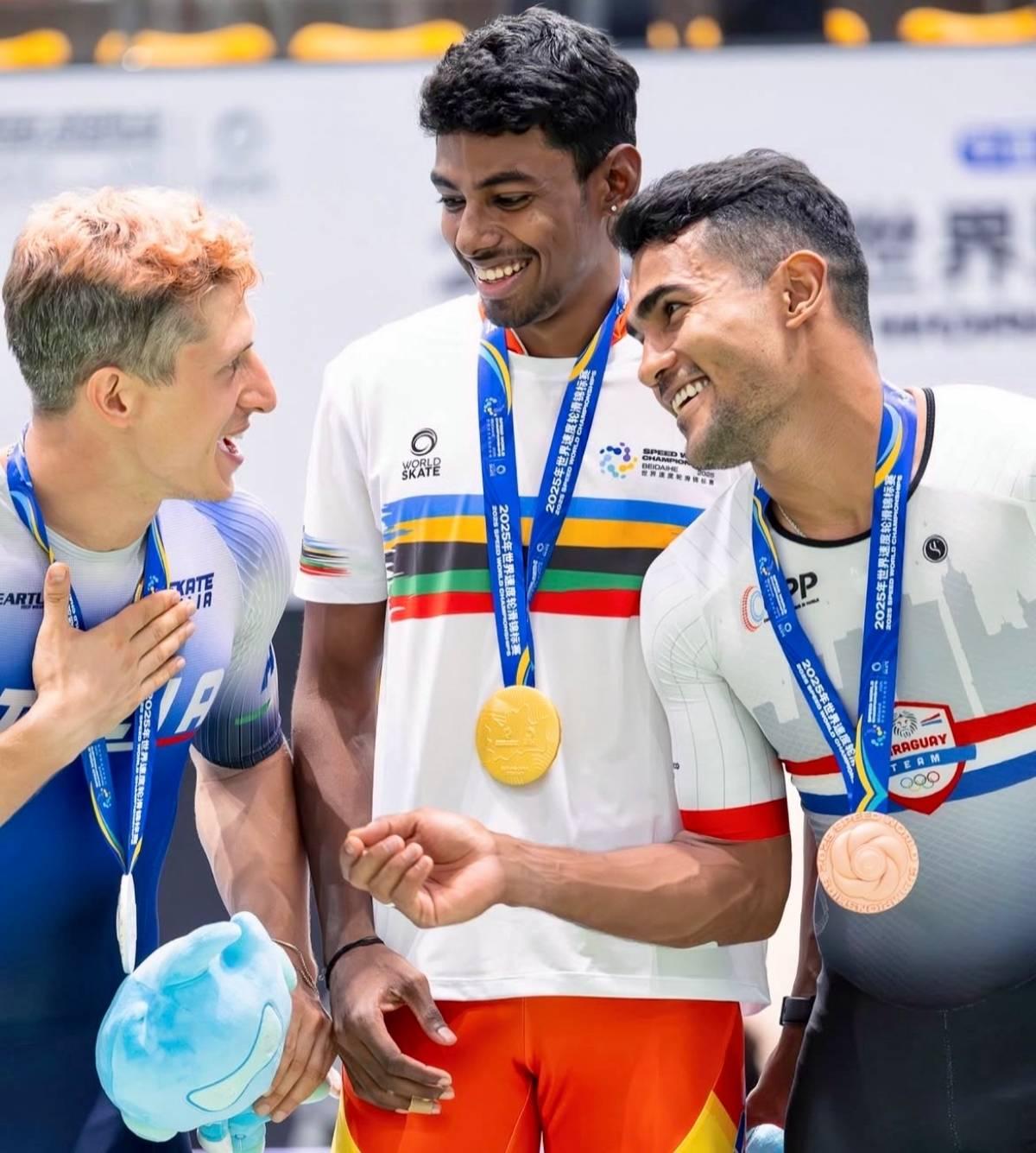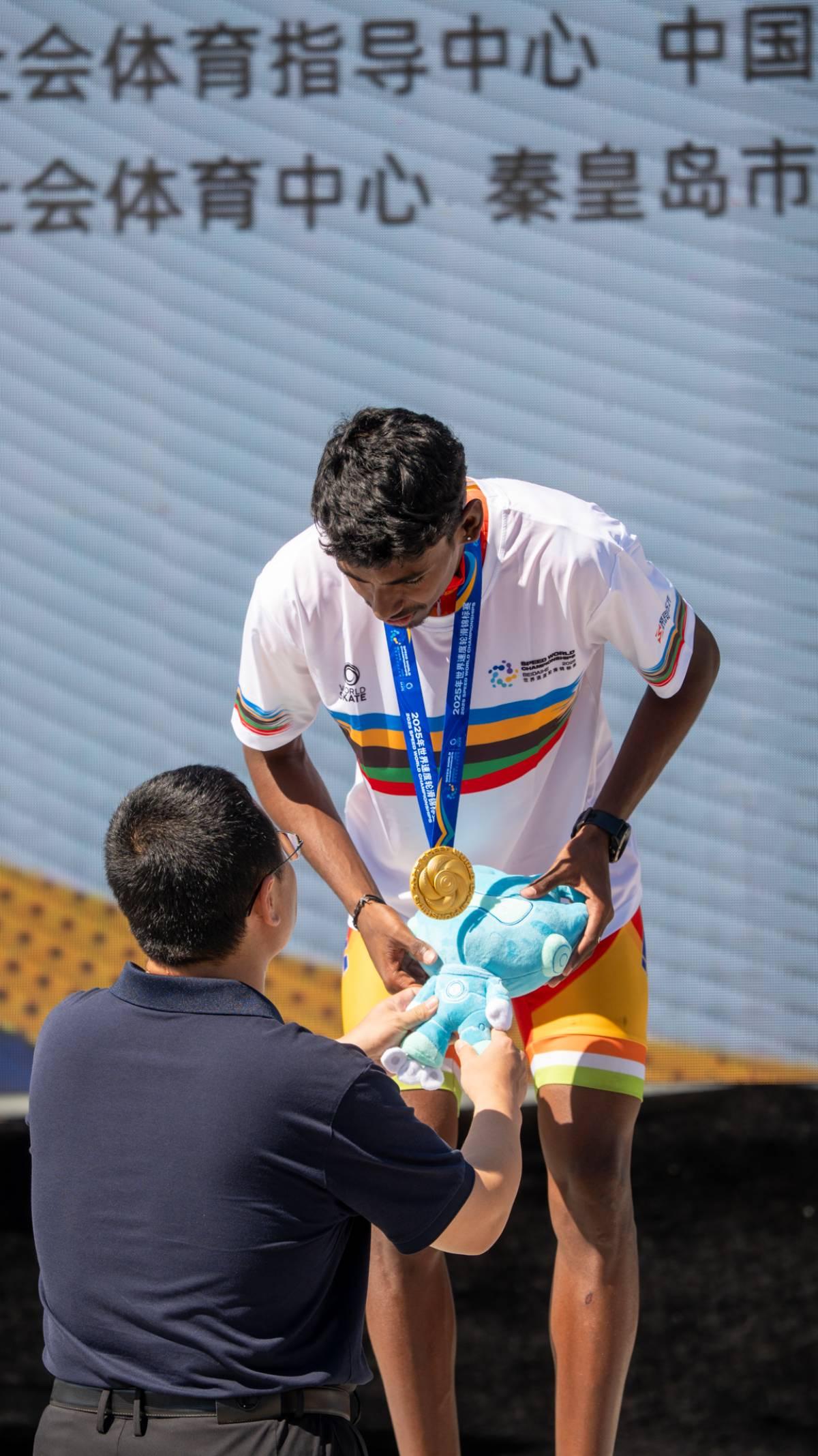 Anandkumar Velkumar, 22, is the first Indian skater to win a gold medal at a World Championship; he did so in the speed skating event in the 2025 World Championship in Beidaihe, China.