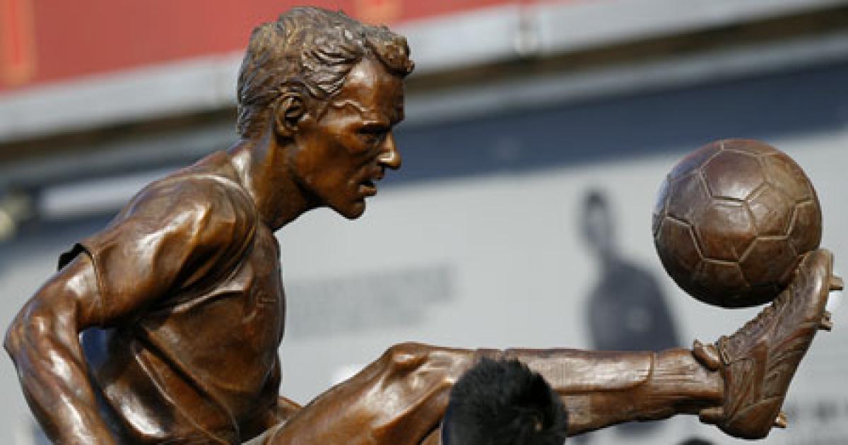 The eight-foot (2.4-metre) high statue is based on Bergkamp, nicknamed the non-flying Dutchman by the British media because of his fear of flying, controlling a pass in mid-air during a 2003 match against Newcastle.