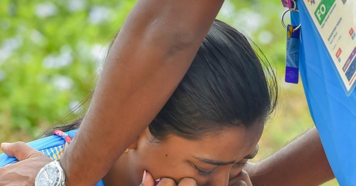 The defeat left Deepika shattered as he she sat on the pavement outside the stadium, her hands covering her face in dejection.