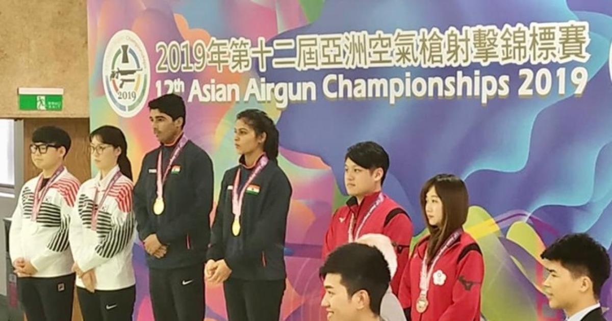 Young pistol shooters Manu Bhaker and Saurabh Chaudhary clinched a gold medal each, their second in the competition, as India continued its domination at the 12th Asian Airgun Championships, in Taoyuan, Chinese Taipei, on Friday