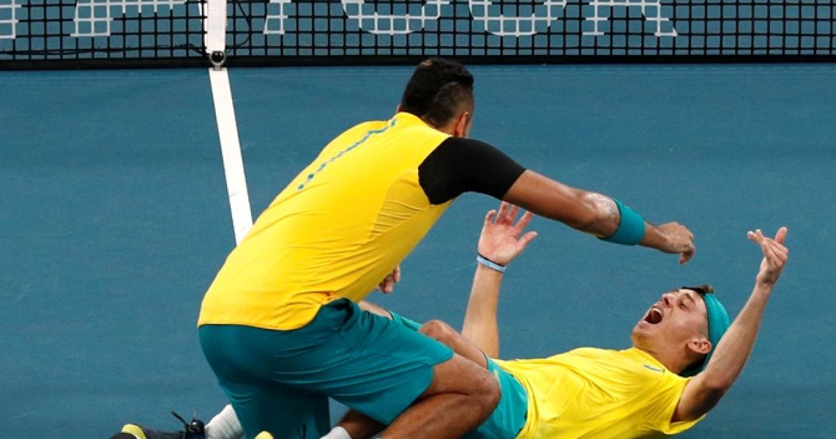 Untested doubles pairing Alex De Minaur and Nick Kyrgios sealed a nail-biting 3-6, 6-3, 18-16 victory for Australia in the deciding match of their quarter-final clash with Great Britain at the inaugural ATP Cup team event in Sydney on Thursday.
