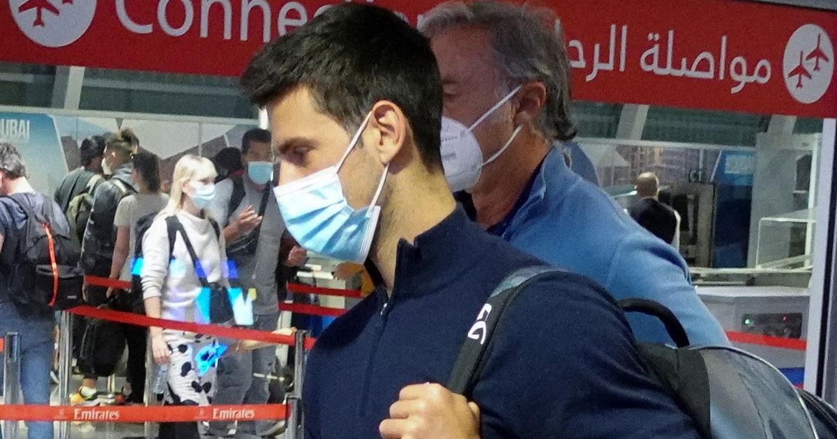 He wore a mask and took selfies with fans as he arrived in Dubai from Melbourne, before taking a terminal buggy to the departure gate for a six-hour flight to Belgrade.