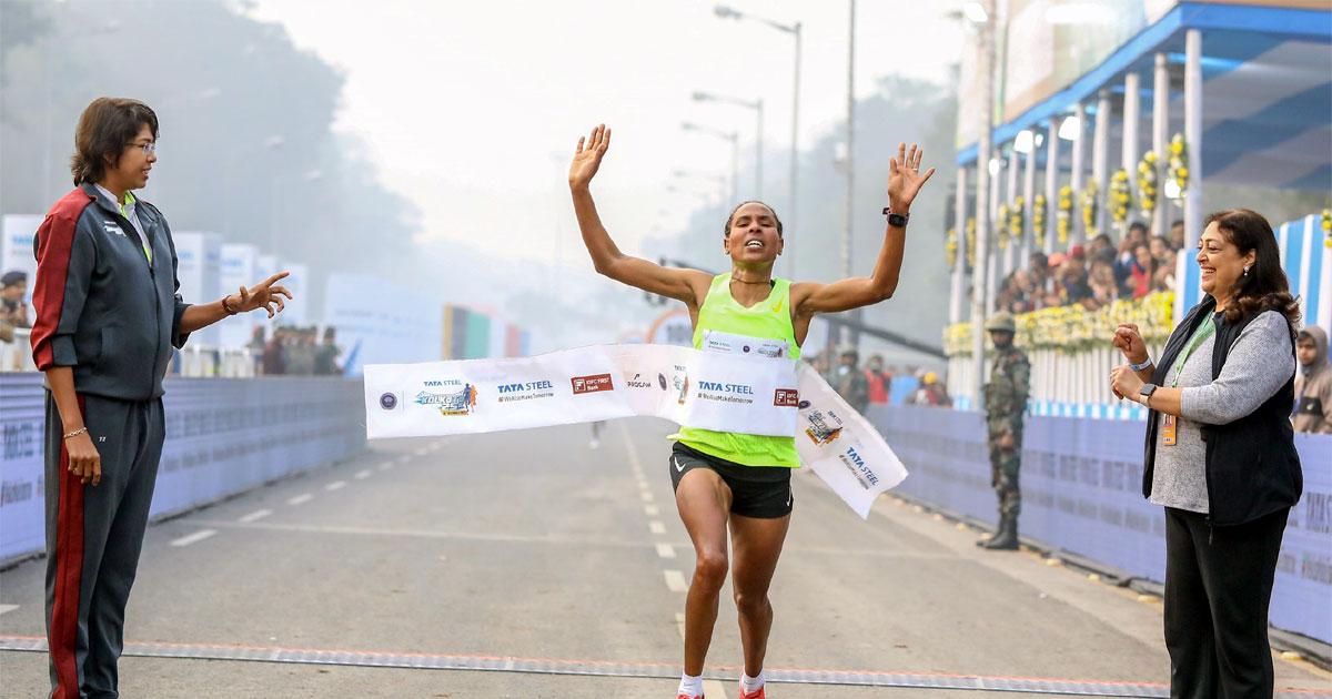 The seventh edition of the Tata Steel Kolkata 25K Marathon saw winners Leonard Barsoton and Desi Jisa in the men’s and women’s elite international category respectively rewrite the record books on a nippy Sunday morning that saw over 15,000 running enthusiasts put their best foot forward literally.