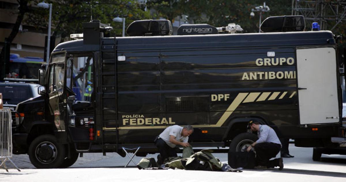 IMAGE: Bomb squad agents control the area near the finishing line of the men's cycling road race at the 2016 Rio Olympics in Rio de Janeiro. Photograph: Eric Gaillard/Reuters