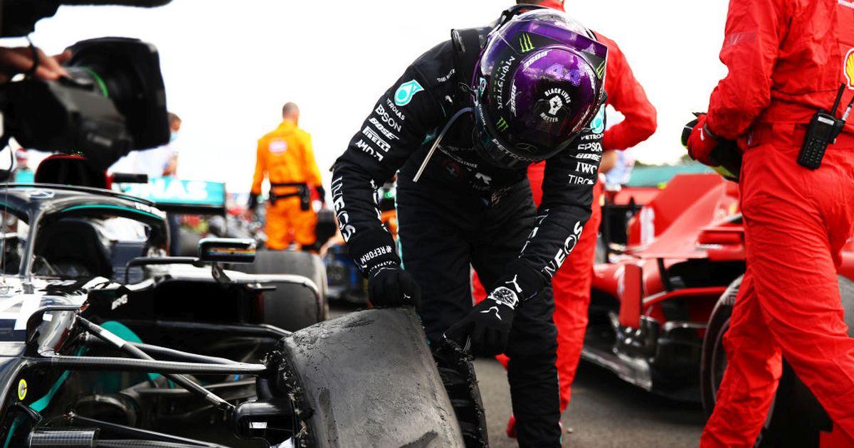 Six times Formula One world champion Hamilton won the race at Silverstone on three wheels and a flat tyre after his front left deflated on the final lap with some 3.8 km between him and the finish.