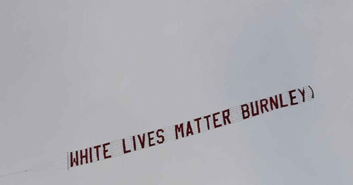 A plane carrying a banner declaring ‘White Lives Matter Burnley’ flew over Manchester City’s Etihad Stadium on Monday at the start of the Premier League game against Burnley.