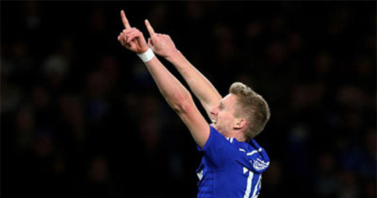 Image: Andre Schuerrle celebrates after scoring the second goal for Chelsea.