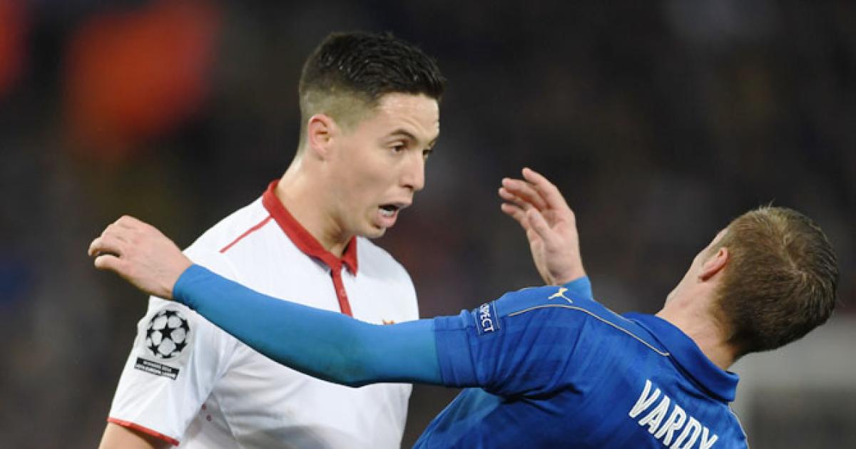 Nasri, who is on loan at Sevilla from Manchester City, was shown a second yellow card by Italian referee Daniele Orsato for violent conduct after squaring up to Vardy.