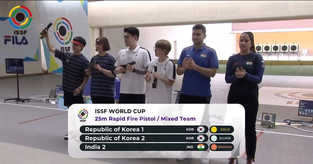 This was Anish and Rhythm's second medal as a pair in the ISSF Shooting World Cup, after having won the gold in the 25m rapid fire pistol mixed team event at the Cairo World Cup in March this year.