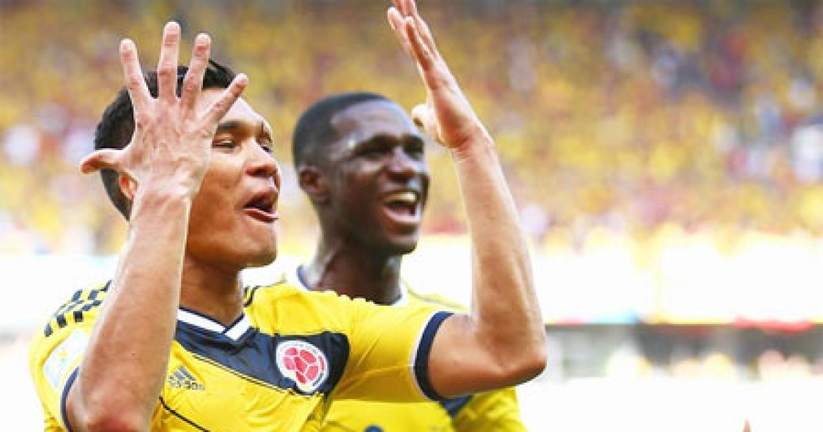 Image: Teofilo Gutierrez of Colombia (left) celebrates