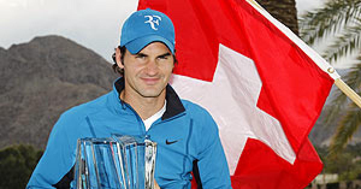 The Swiss, who had won three consecutive titles at Indian Wells from 2004-06, raised both arms skywards in celebration as the capacity crowd at the Indian Wells Tennis Garden erupted in applause.