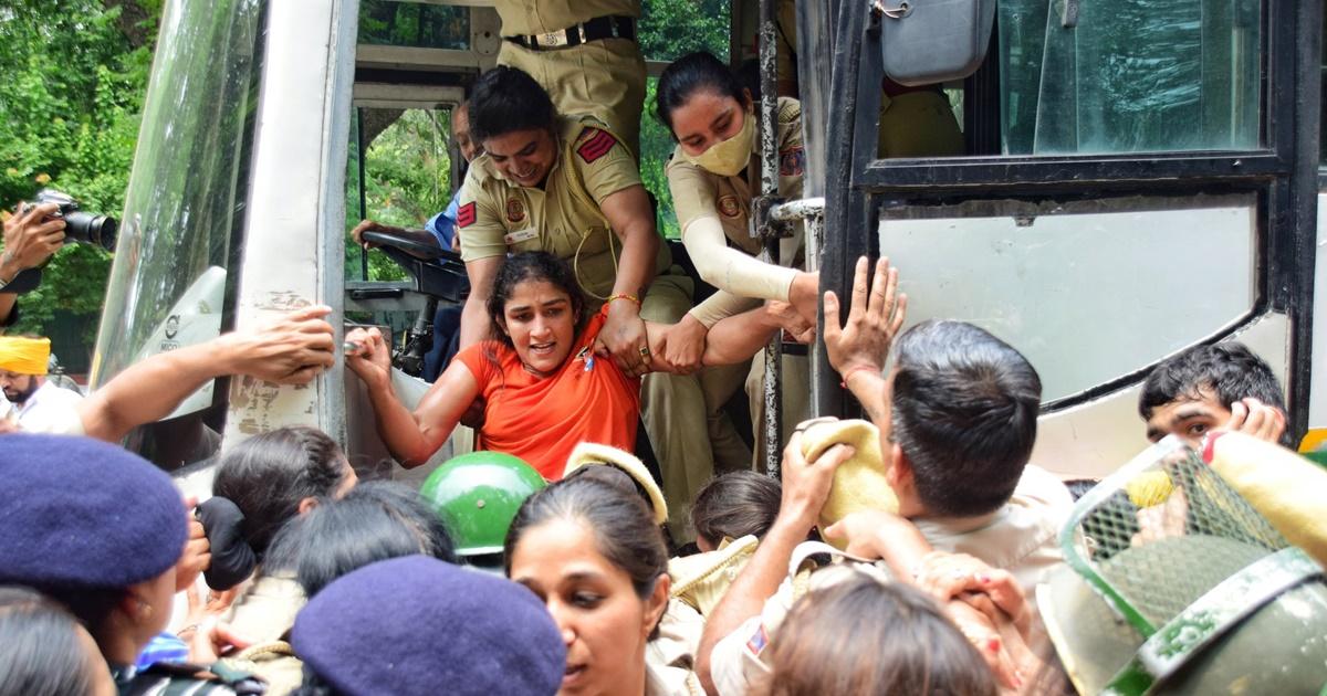 The police officials dragged and lifted them into buses along with several other wresters and their supporters. The wrestlers were pushed into buses and taken to different unknown locations.