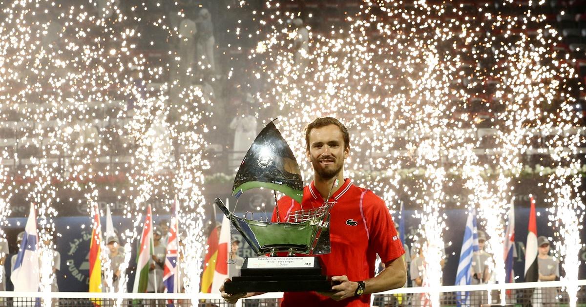 Daniil Medvedev continued his impressive form with a win over compatriot Andrey Rublev in the Dubai Tennis Championships final on Saturday, claiming his third title in three weeks.
