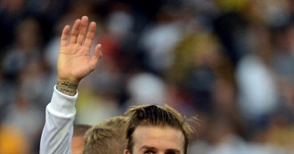 Image: David Beckham Los Angeles Galaxy waves to the crowd as he walks off the field after Galaxy defeat the Houston Dynamo to win the 2012 MLS Cup at The Home Depot Center.