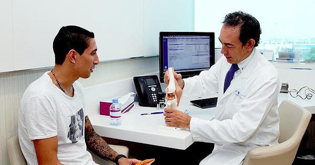 A photograph showing Angel di Maria undergoing a medical at Aspetar, a Doha-based hospital. Photograph: Aspetar/Twitter