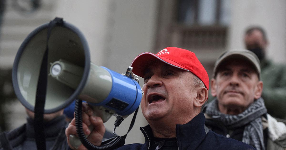 Serbian tennis player Novak Djokovic's father Srdjan speaks speaks through a megaphone during the protest in front of the National Assembly in Belgrade, Serbia, as the player is fighting in Australia his visa cancellation and pending deportation in a Federal Court challenge