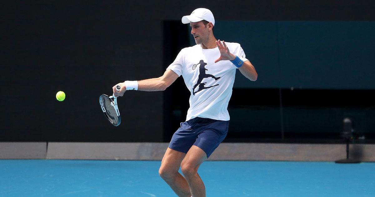 Novak Djokovic on Tuesday warmed up for his bid to win a record 21st tennis major at next week's Australian Open, hitting practice shots at Melbourne Park, but he still faces the threat of deportation from the country.