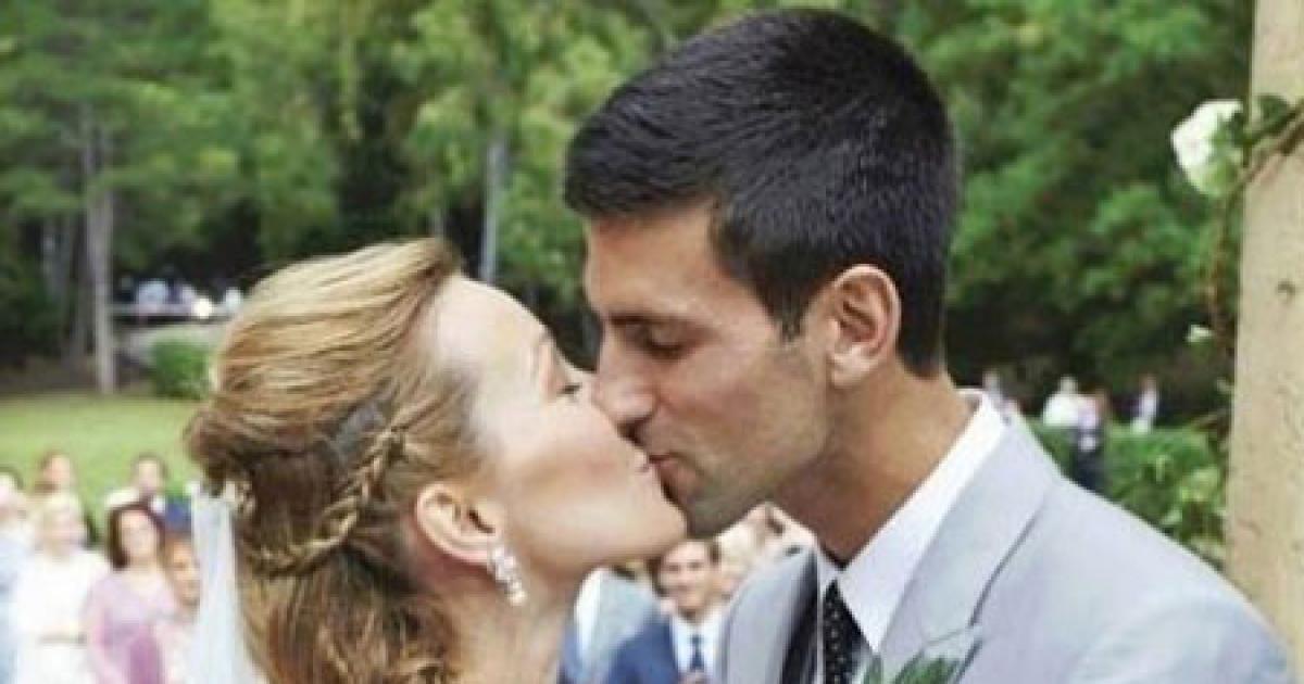 Image: Novak Djokovic kisses his wife Jelena Ristic on their wedding day