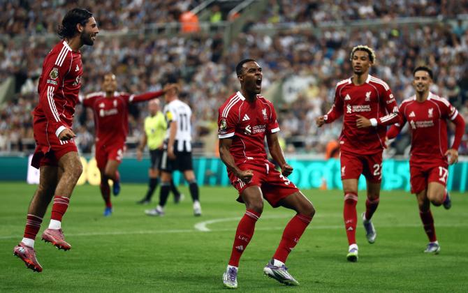 Liverpool had been forced to soak up Newcastle pressure for half an hour and had made little headway but took the lead completely against the run of play when Ryan Gravenberch cut in from the left and dispatched a low shot just inside Nick Pope's post in the 35th minute.