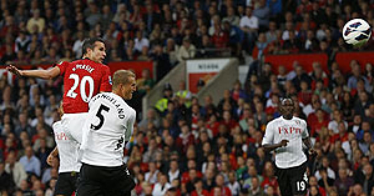 Manchester United's Robin van Persie (left) scores against Fulham during their English Premier League match on SaturdayJapan's Shinji Kagawa also scored on his home debut, the former Borussia Dortmund midfielder tapping in after Mark Schwarzer had spilled Tom Cleverley's shot.