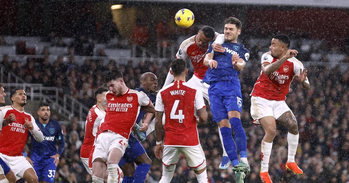 After that it was an Arsenal blitz with Bukayo Saka hitting the post and Gabriel Jesus missing two good chances before Mavropanos scored his first league goal for the Hammers with a thumping header from a James Ward-Prowse corner in the 55th.