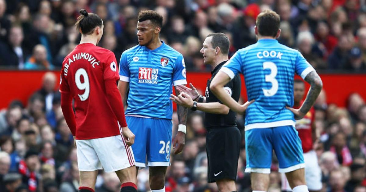 IMAGE: Bournemouth'S Tyrone Mings and Manchester United'S Zlatan Ibrahimovic clash during their EPL match on Saturday