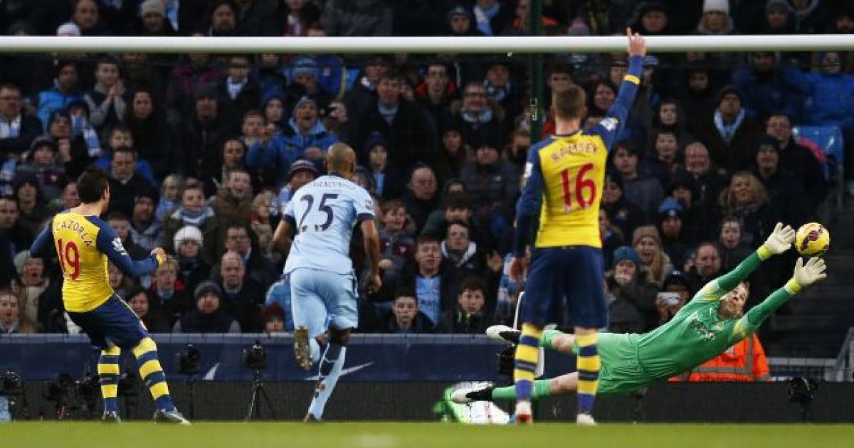 Santi Cazorla gave Arsenal the lead from the penalty spot in the 24th minute, after returning City skipper Vincent Kompany felled Nacho Monreal, and Olivier Giroud doubled the lead in the 67th minute with a deft header from Cazorla's free kick.
