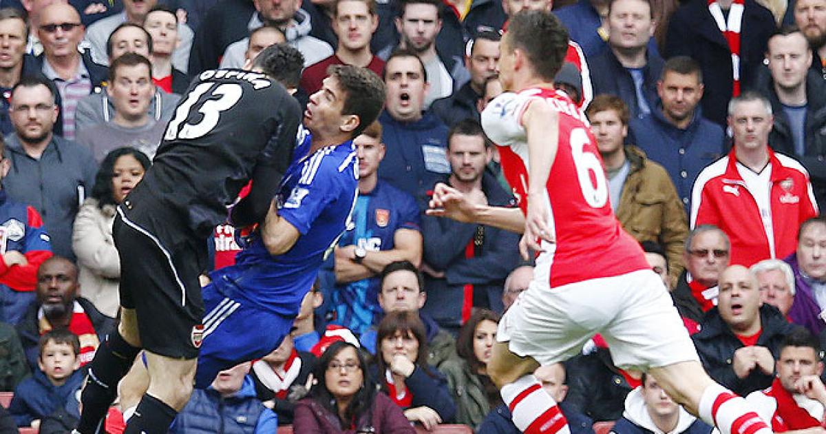 Oscar was played in by Cesc Fabregas in the 16th minute of the London derby and after dinking the ball over the outrushing Ospina he was flattened, appearing to be struck on the head.