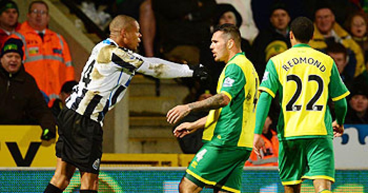 Image: Loic Remy of Newcastle United and Bradley Johnson of Norwich City come to blows during their English Premier League match at Carrow Road in Norwich, England on Tuesday