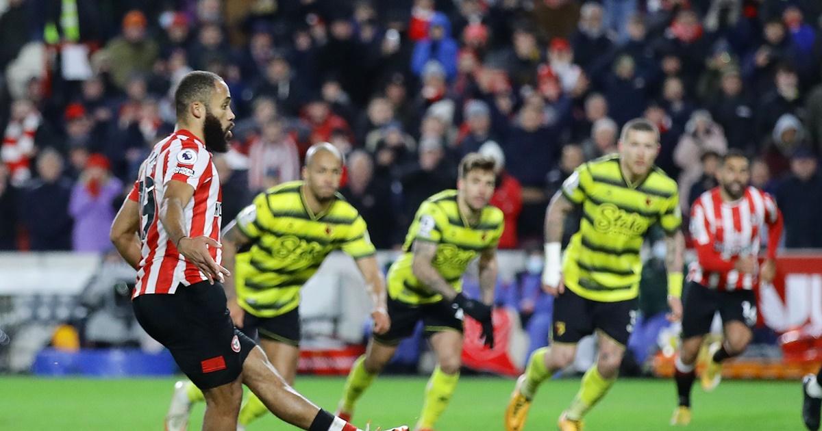 Brentford scored a stoppage-time penalty through Bryan Mbuemo following Pontus Jansson's header to secure a comeback 2-1 home win over Watford in the Premier League on Friday as they cancelled out a first-half opener from Emmanuel Dennis.