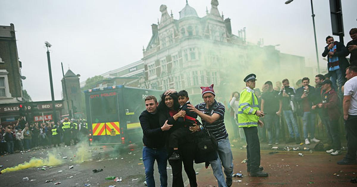 United's players posted video of the attack from inside the bus on social media. One officer from London's Metropolitan Police and a member of the public sustained minor injuries, but no arrests were made.