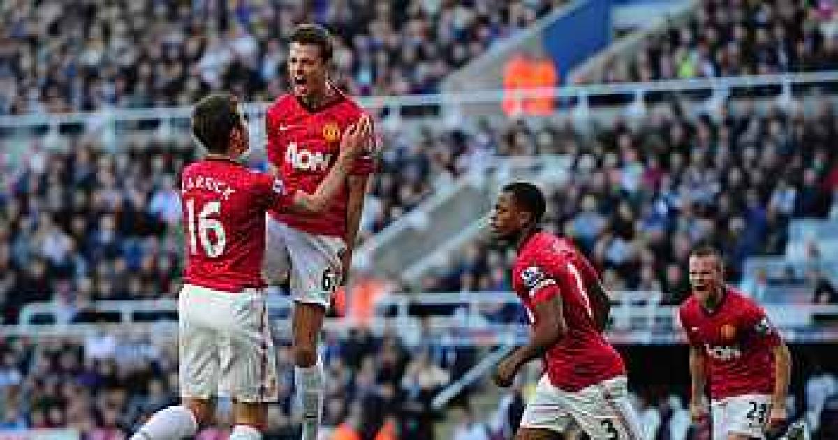Manchester United, desperate to bounce back from last weekend's surprise 3-2 home defeat by Spurs, made a high-tempo start at Newcastle and were rewarded in the eighth minute when defender Jonny Evans scored with a towering header from a corner.