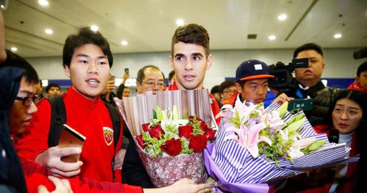 Fans wearing the team's red and white colours shouted "Oscar, Oscar!" when the Brazilian arrived at Shanghai's international airport on Monday. He stopped to sign autographs before being led away by team officials.