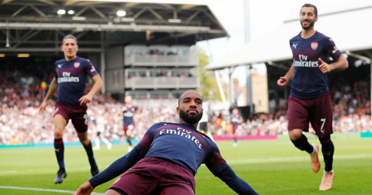 Two goals from Frenchman Alexandre Lacazette, a wonderful back-heeled strike from Aaron Ramsey and two more from Pierre-Emerick Aubameyang gave Arsenal a 5-1 win over Fulham at Craven Cottage in the Premier League on Sunday.
