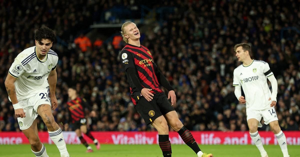The visitors had a hosts of chances in the first half, with Haaland twice denied by fine saves from home goalkeeper Illan Meslier, while England forward Jack Grealish blazed two efforts over from good positions.