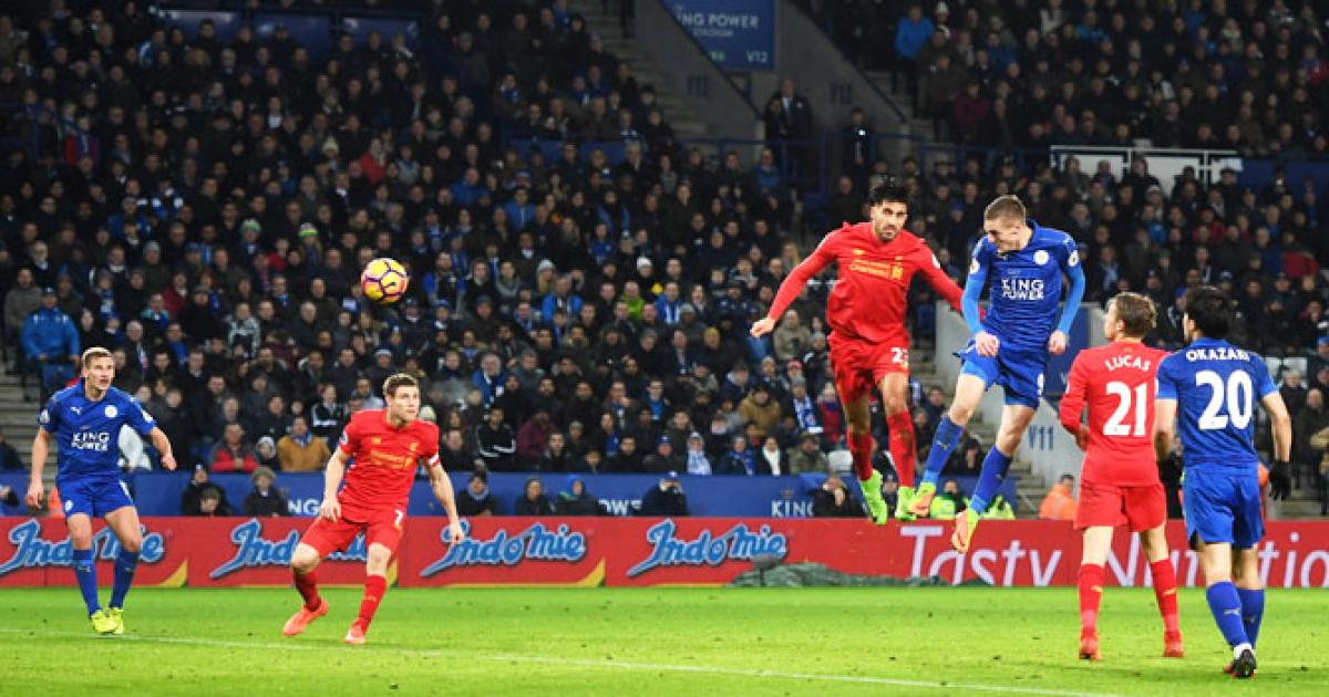The expected Liverpool response never materialised after the break and Leicester went further ahead on the hour when Vardy timed his jump perfectly to head in Christian Fuchs's cross.