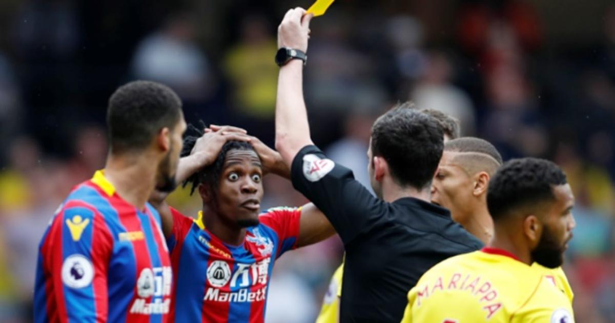 Watford's Abdoulaye Doucoure was so incensed by his behaviour that he was also yellow carded for pushing Zaha after one appeal. With his name already in the referee's notebook, Doucoure could easily have been dismissed.