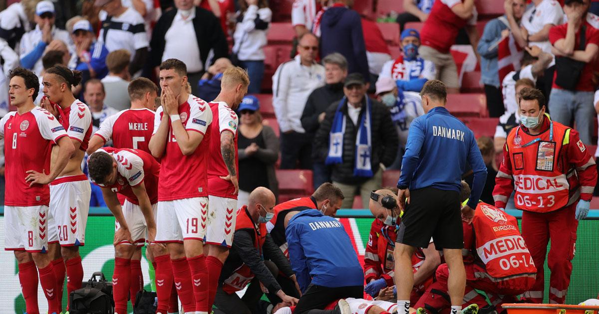 Eriksen, 29, collapsed on the Parken Stadium field in the first half against Finland, his eyes staring blank into a TV camera. CPR was administered and his heart was restarted with a defibrillator as players shielded the medics.