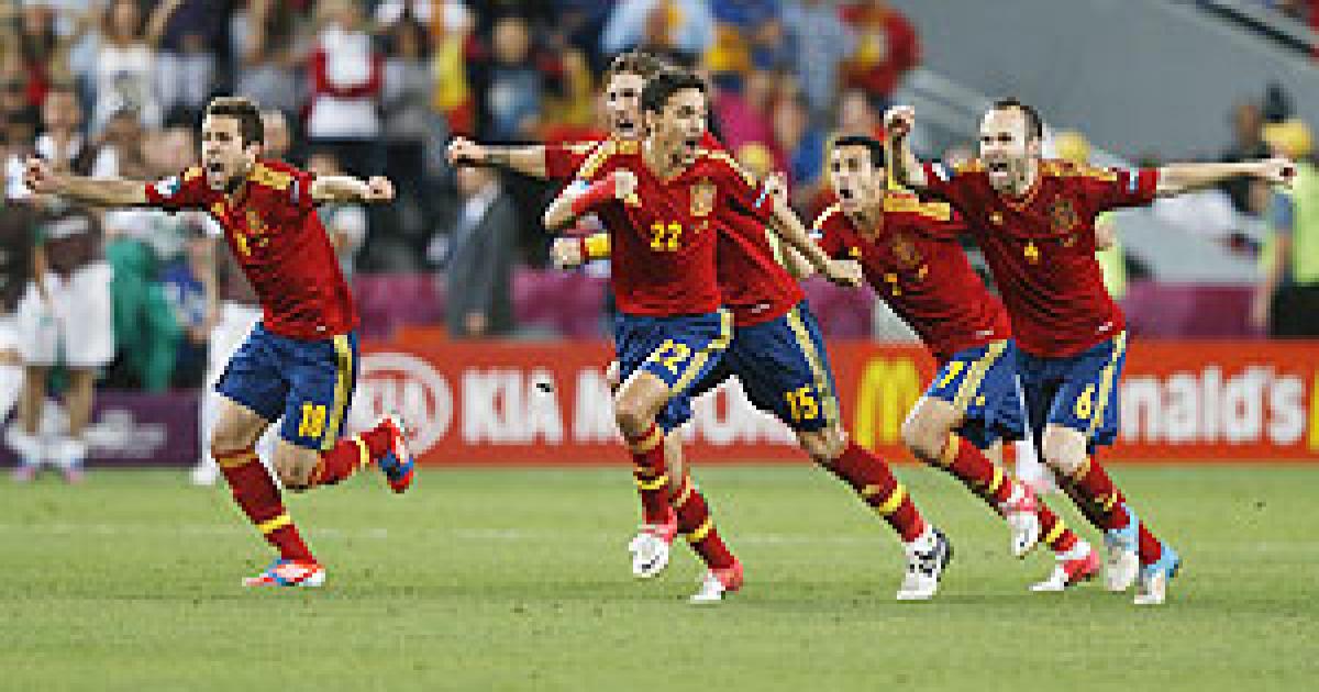 World champions Spain have reached a third consecutive major tournament final, which will be played in Kiev on Sunday, equalling the record set by West Germany in the early 1970s.