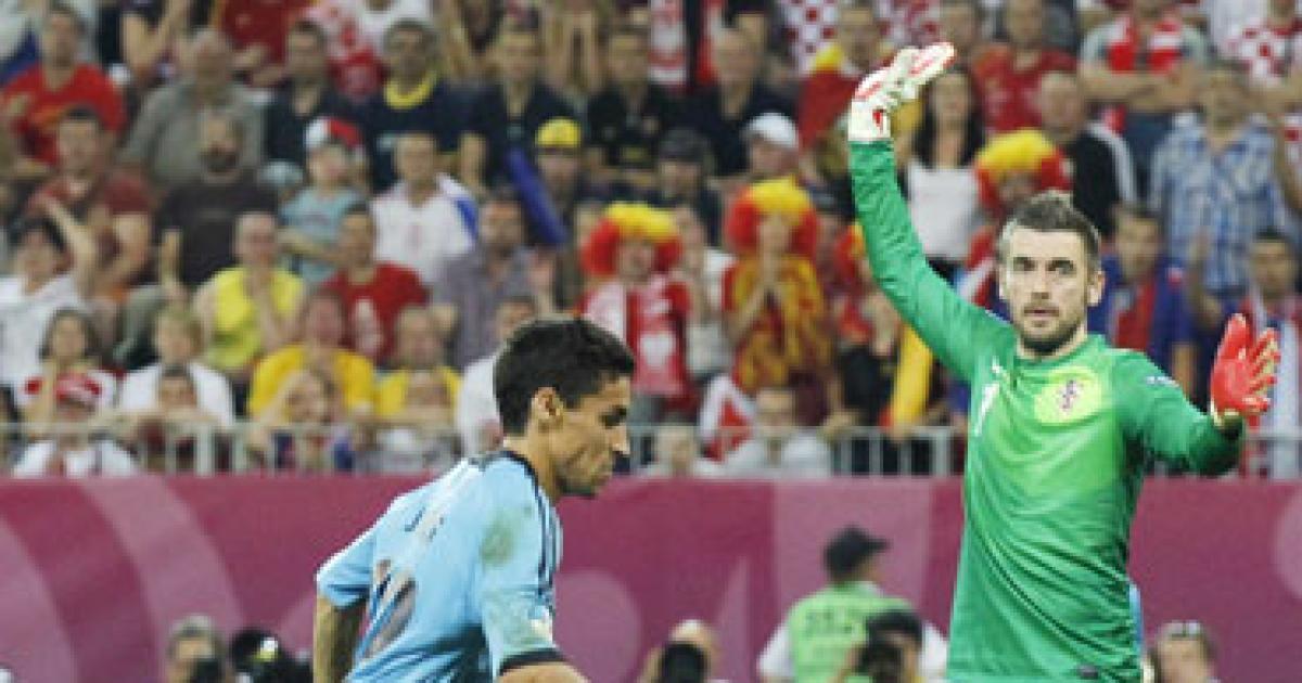 Photo: Spain's Jesus Navas (L) shoots to score a goal past Croatia's goalkeeper Stipe Pletikosa during their Group C match at the PGE Arena in Gdansk (REUTERS/Thomas Bohlen)
