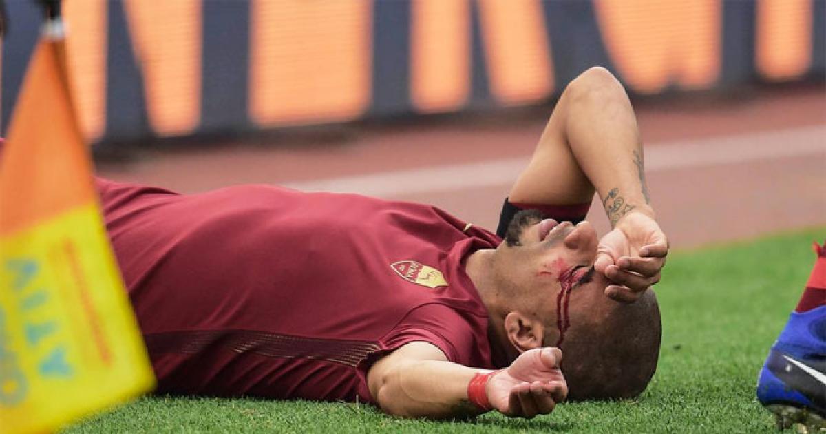 There was a scuffle involving players and officials from both teams after the goal, sparked when Strootman squirted water at Lazio substitute Danilo Cataldi who grabbed the Dutchman's shirt by the collar.