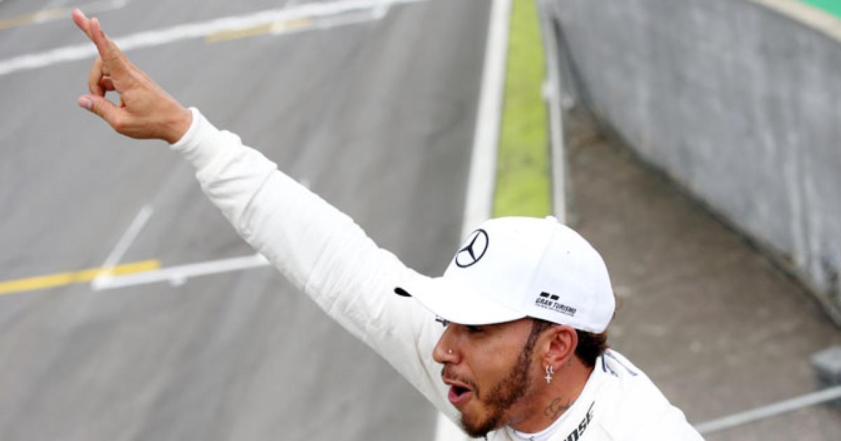 IMAGE: Pole position qualifier Lewis Hamilton of Great Britain and Mercedes GP celebrates in parc ferme during qualifying for the Formula One Grand Prix of Brazil at Autodromo Jose Carlos Pace in Sao Paulo, Brazil, on Saturday. Photograph: Charles Coates/Getty Images