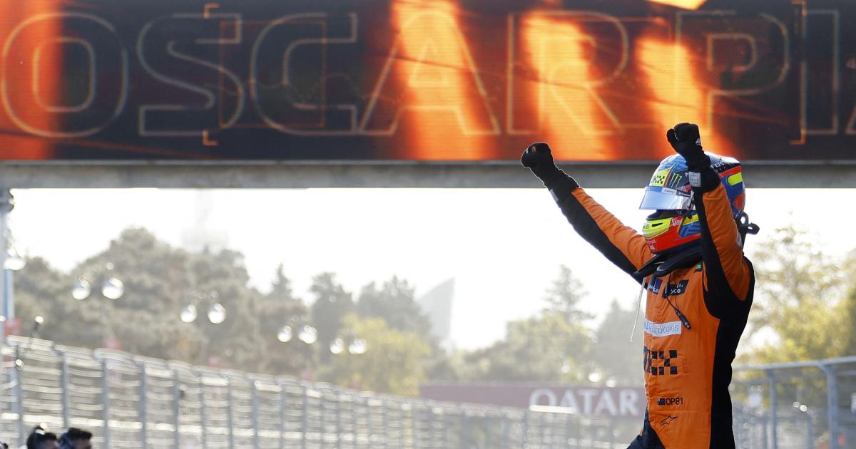 Oscar Piastri won the Azerbaijan Grand Prix and sent McLaren top of the constructors' standings in a race that finished with a virtual safety car after a penultimate lap collision between Ferrari's Carlos Sainz and Red Bull's Sergio Perez.