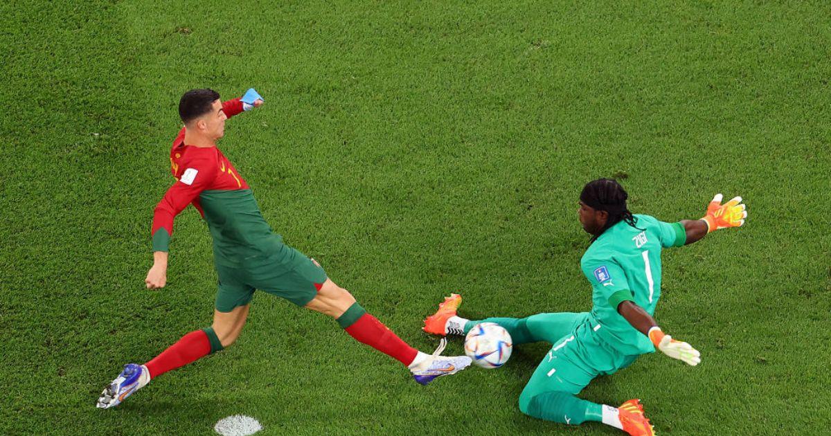 IMAGE: Ghana's Lawrence Ati Zigi saves an attempt by Cristiano Ronaldo during the FIFA World Cup Qatar 2022 Group H match between Portugal and Ghana. Photograph: Catherine Ivill/Getty Images