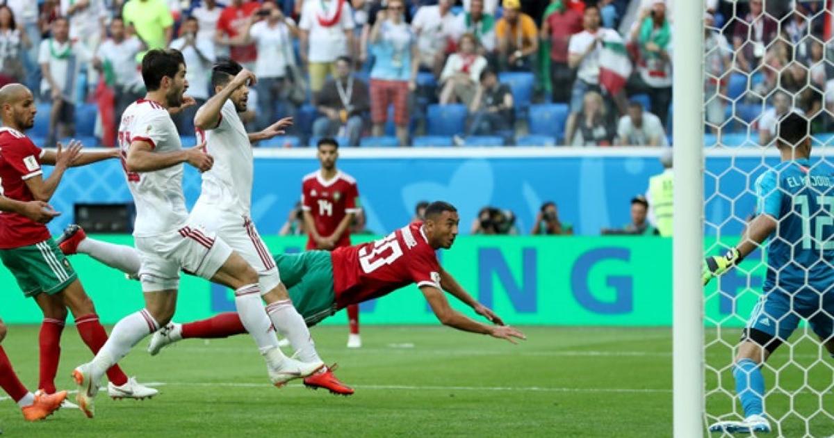 Iran left back Ehsan Hajsafi whipped in a free kick five minutes into added time and Bouhaddouz launched himself at the ball, flashing a header past his own keeper Munir Mohamedi.